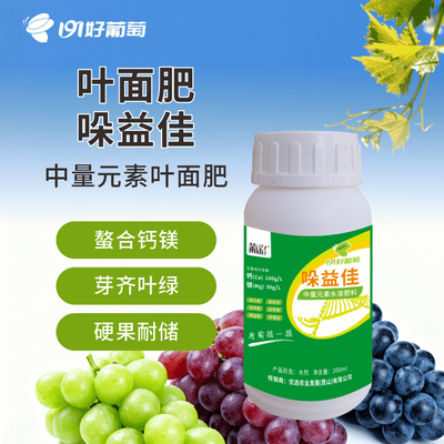 叶面肥:伤流结束后、新梢生长期,可用两遍以上500倍【亚可丽齐】+15000倍5%S-诱抗素;花前(萌芽后30天)500倍【亚可丽花】+500倍【亚可丽控】两遍;坐果后,可用500倍【哚益佳】;保果后35-40天,可用500倍【哚益佳】+500倍磷酸二氢钾+15000倍5%S-诱抗素,7天一次,连用3-4次;二次膨大期(果实开始发软)500倍【哚益佳】+300倍【亚可丽红】两遍;成熟期500倍【哚益佳】+300倍【亚可丽甜】两遍。如果因为产量过高或者高温等原因上糖慢,可以5天一遍500倍【哚益佳】+300倍【亚可丽甜】叶面肥,直到销售。
